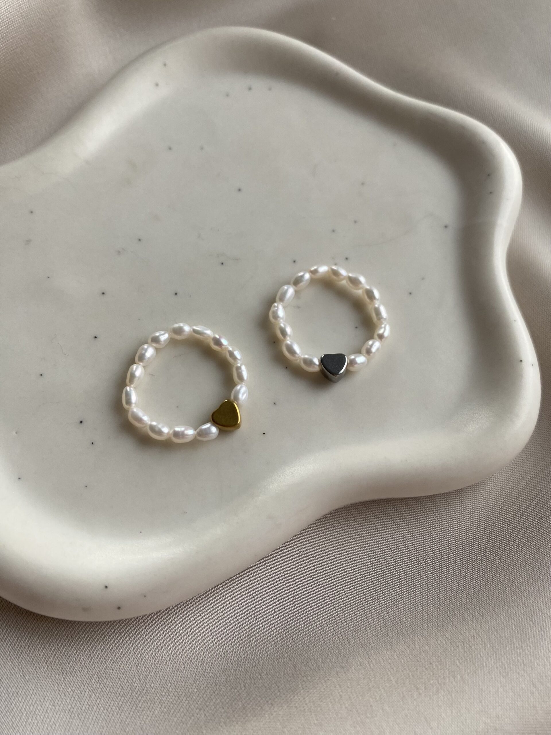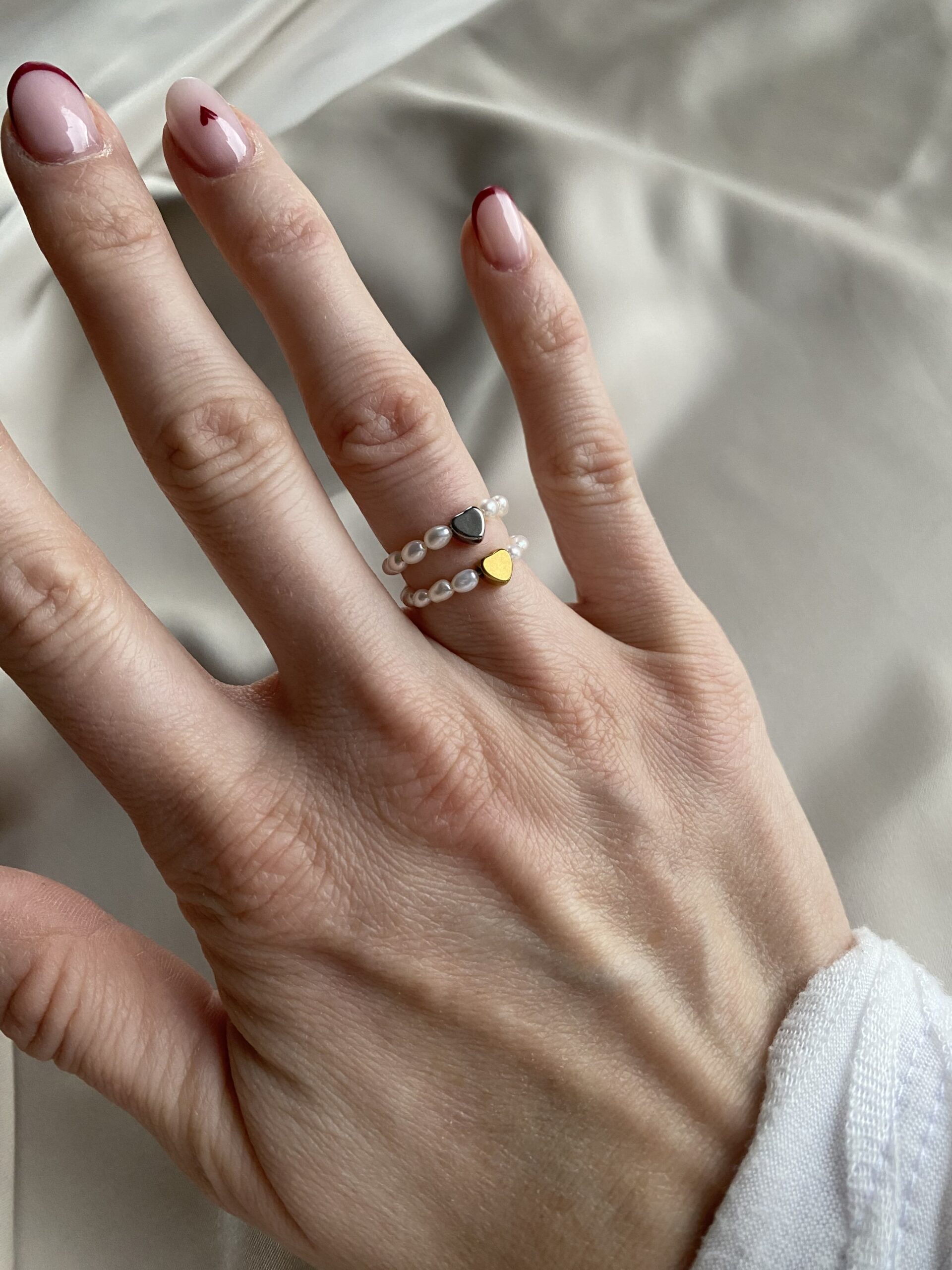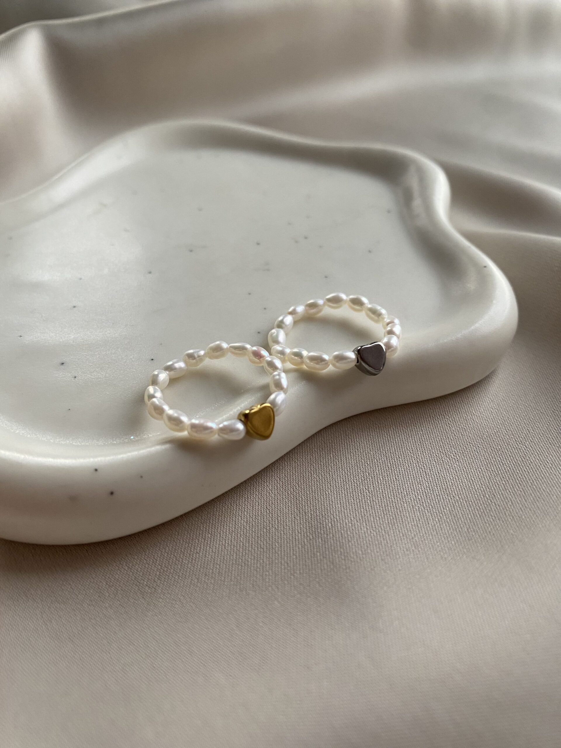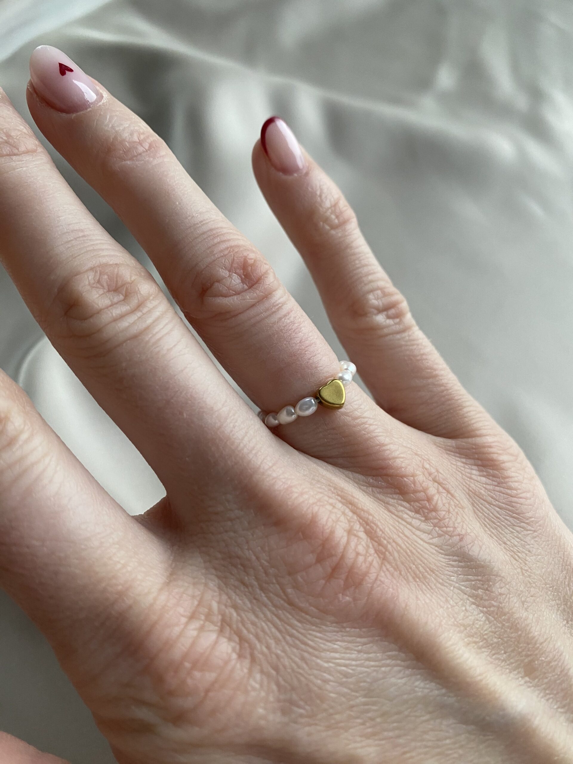 Jemný minimalistický prstienok HEART je vyrobený z jemných riečnych perličiek, doplnený o srdiečko z chirurgickej ocele.